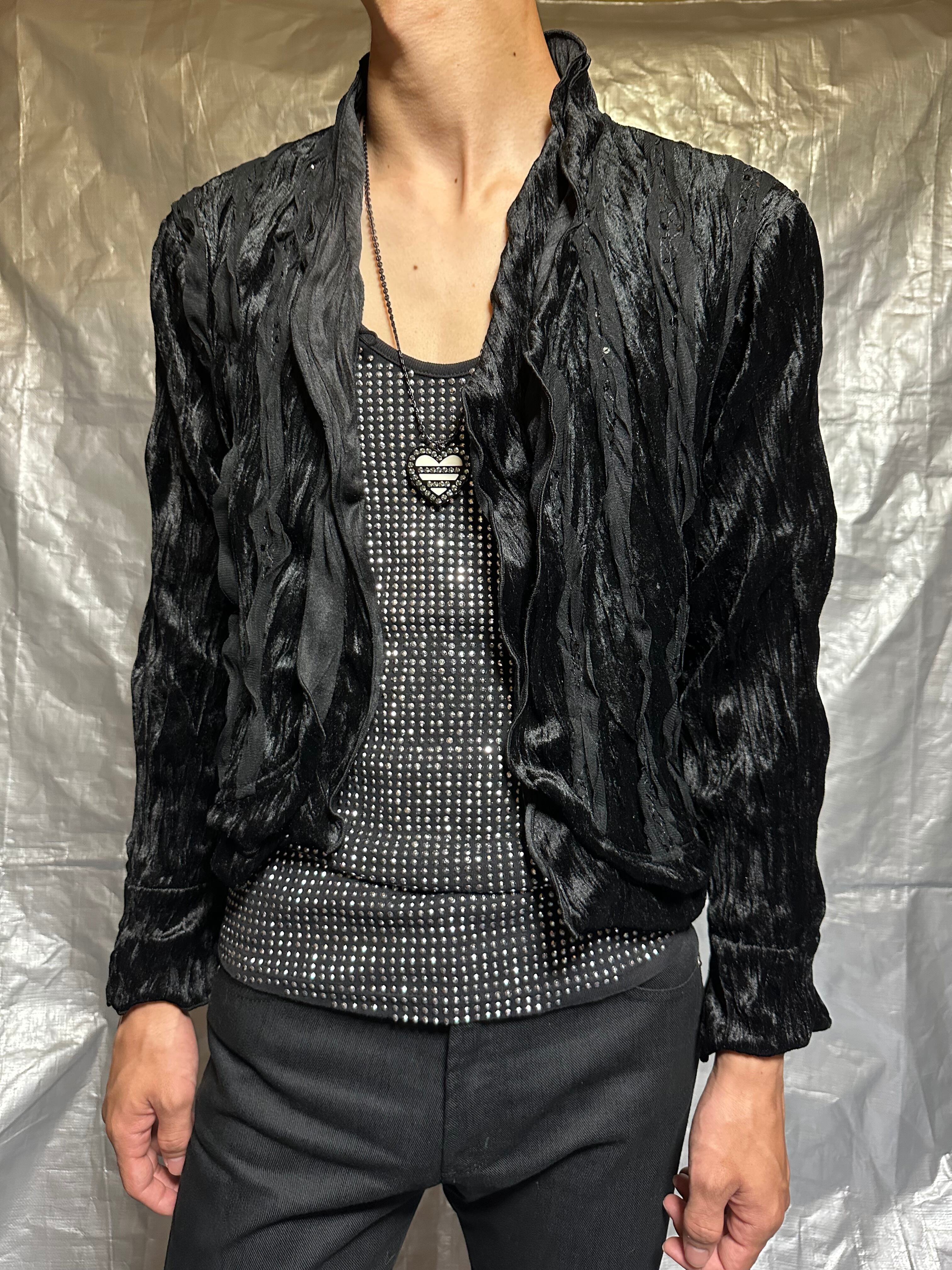 frill shiny shirt jacket